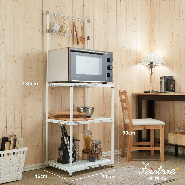 - 看空間選尺寸:選購前請量好架子放置地點的長、寬、高尺寸,且若是做為廚房電器架,更要記得四周預留至少5-8公分的散熱空間。