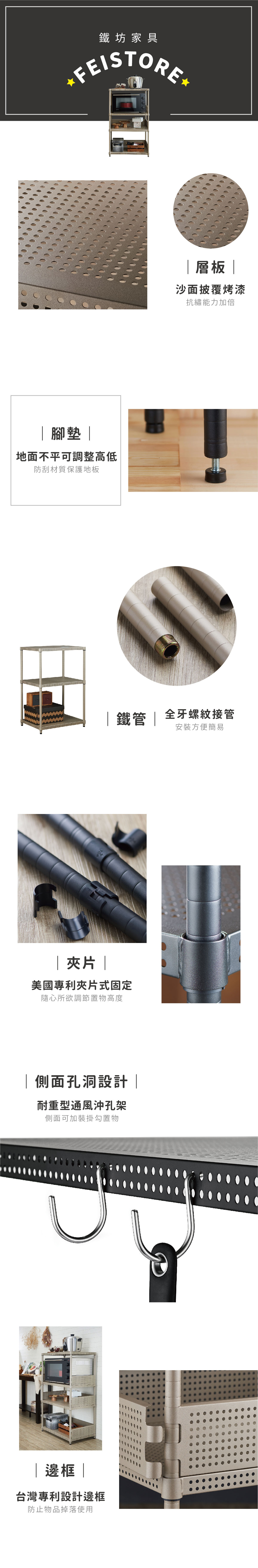 ➤注意事項:我們所標示的層板耐重公斤數,是指SGS測試的「載重破壞」數據(也就是經測試把層板壓到斷裂為止的數據),因層板本身附有彈性,此款鐵架為大尺寸層板(面積大彈性就越大)在集中放重時(如放:烤箱、烘碗機、微波爐等有一定重量之物品),層板是會出現微微向下彎狀況,如不能接受此現象者請主動聊聊告知,並洽客服做層板加強動作。