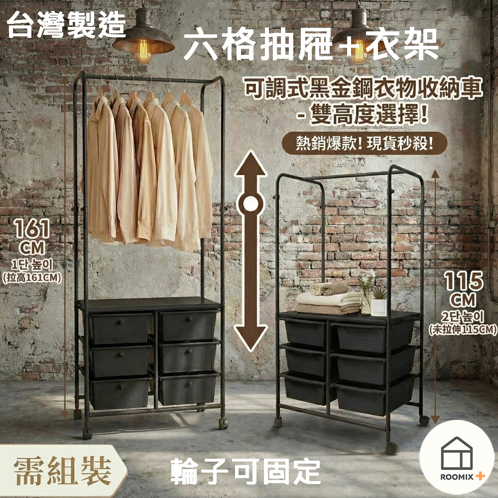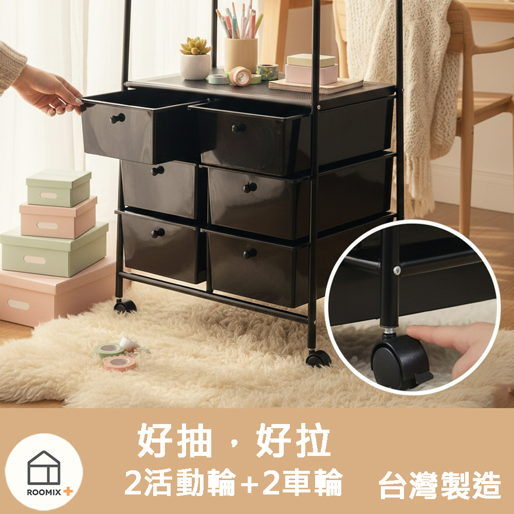 這款【六格抽屜+衣架二合一收納車】,專為小空間與實用派設計,一次解決收納困擾。