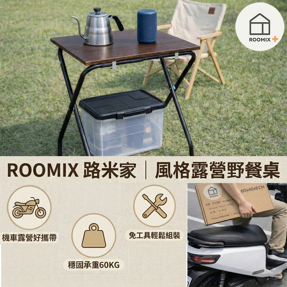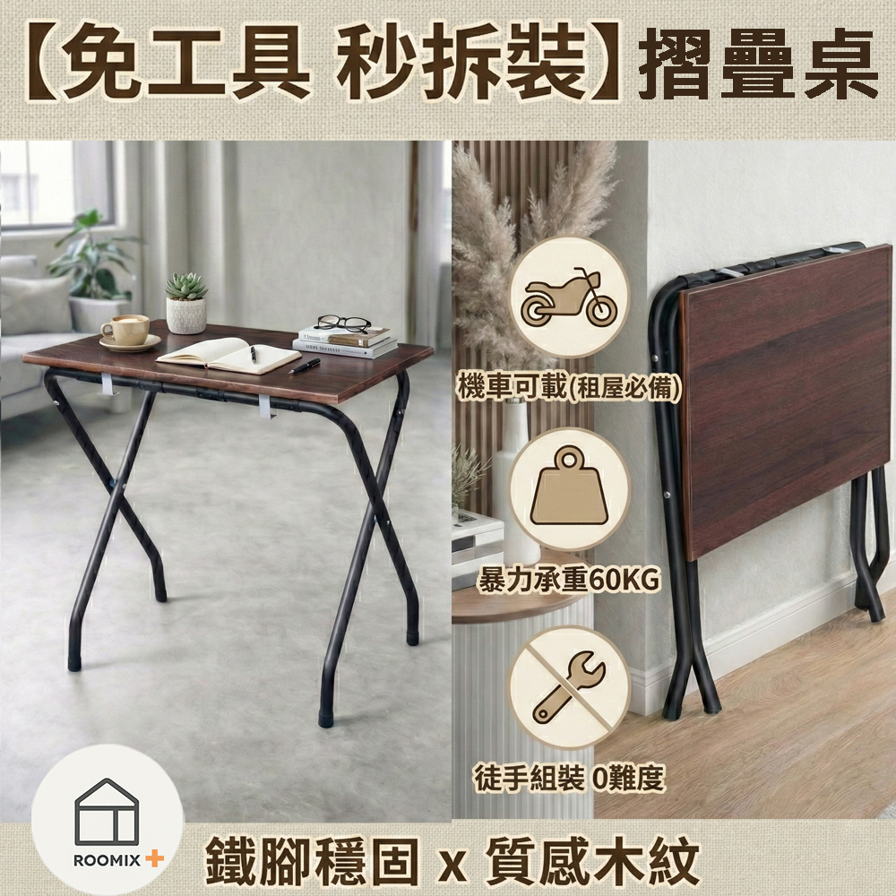 【ROOMIX】都會職人・工業風快拆折疊桌|機車載得下的穩固好桌
