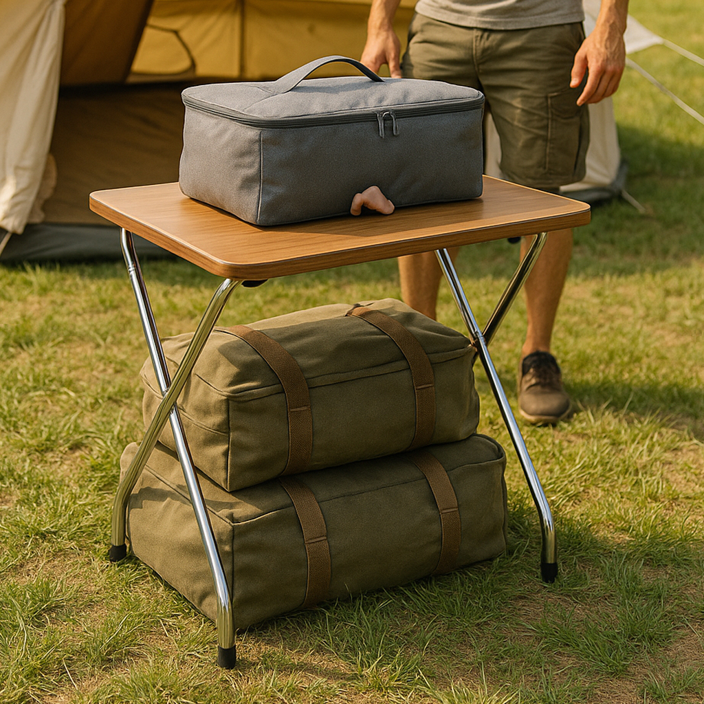 溫潤的木紋桌面,搭配俐落的金屬亮面腳管。無論是放在家裡當咖啡桌、工作桌,還是帶去戶外露營野餐,拍照都超好看,瞬間提升生活品味。