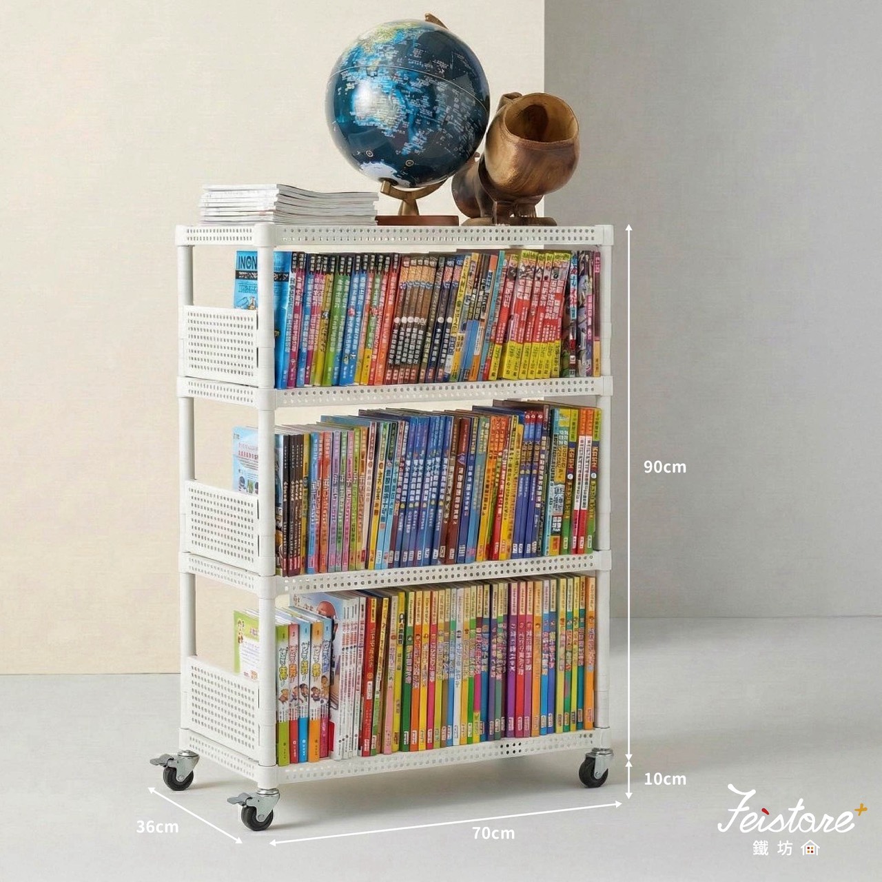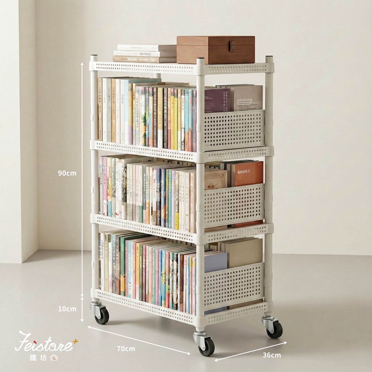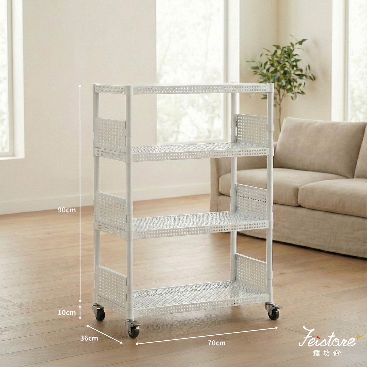 36深*70寬*90高-四層白色(一型)+36邊框六片+2.5輪(安全夾具)