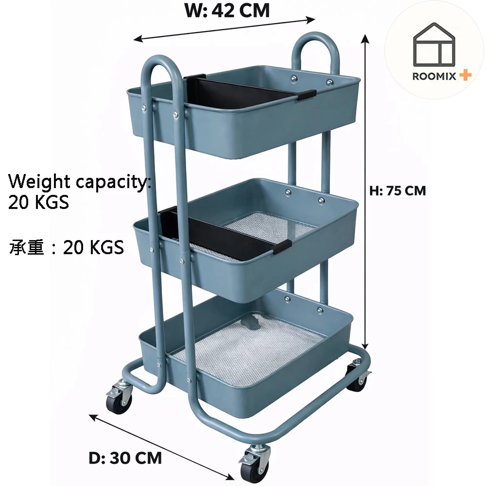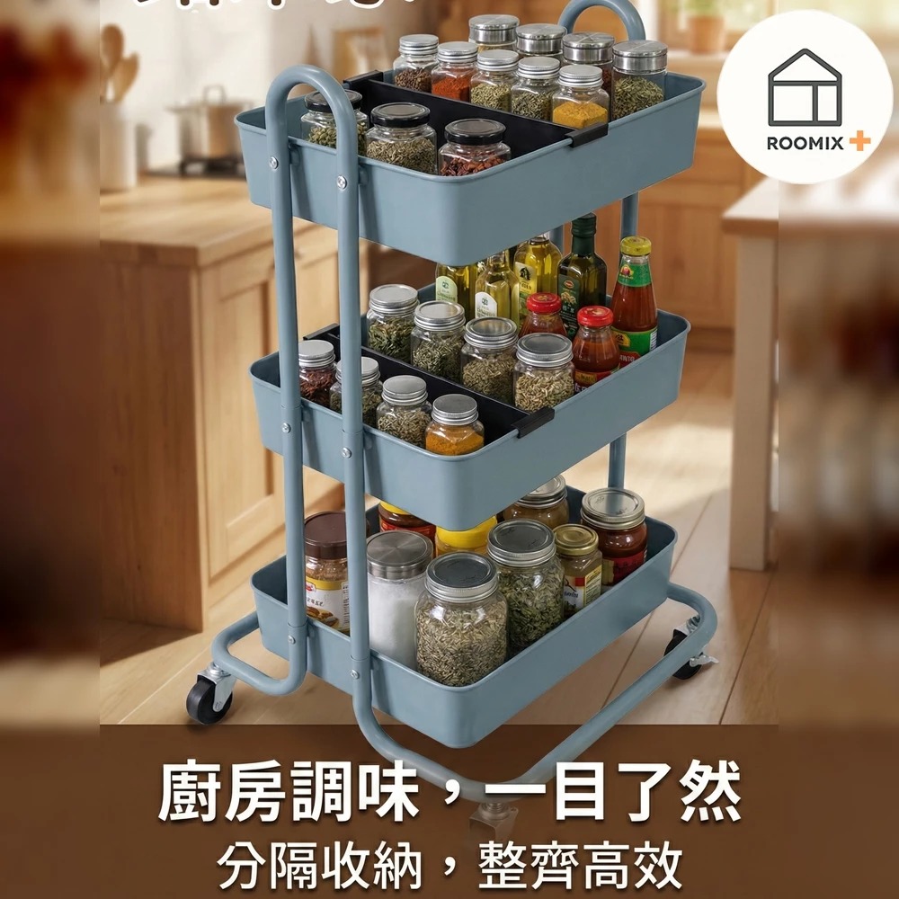 這款高顏值、高質感的北歐風三層推車,最上層與中層特別配備「黑色分隔板」,讓您可以自由調整收納區塊,無論是保養品、文具、調味料還是嬰兒用品,都能分類得井井有條!