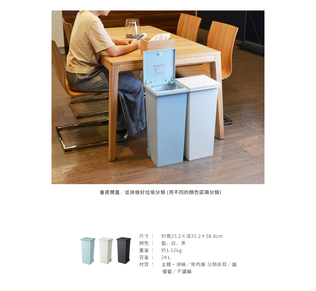 材質:[主體,滑輪]聚丙烯、[分類掛耳]鐵、[彈簧]不鏽鋼