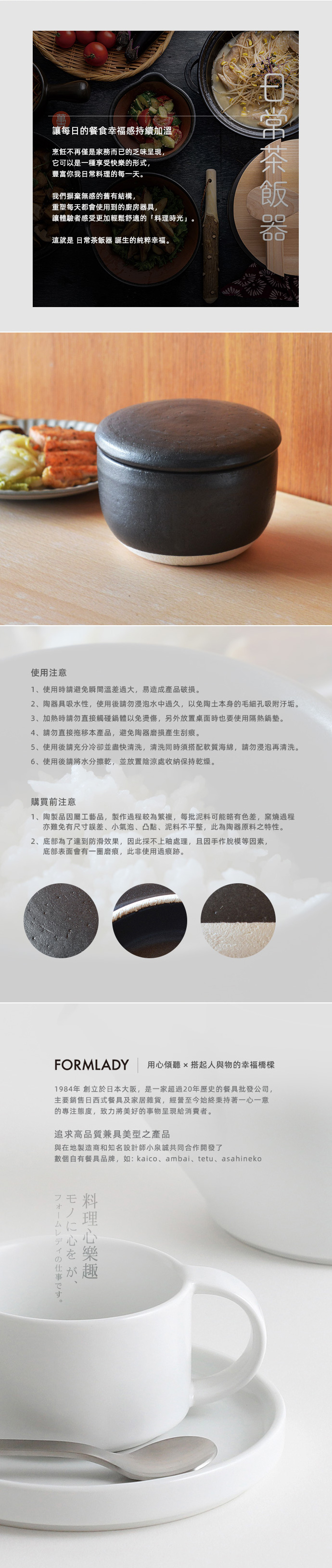 陶製品因屬工藝品,製作過程較為繁複,每批泥料可能略有色差,窯燒過程亦難免有尺寸誤差、小氣泡、凸點、泥料不平整,此為陶器原料之特性。
